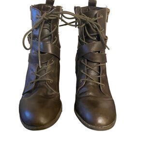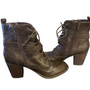 DIBA size 9 1/2 brown moto boots zipper side heal buckle witch boots