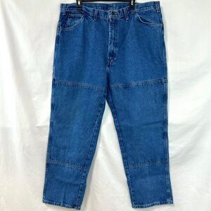 DICKIES Blue Denim Double Reinforced Knee Relaxed Straight Leg Jeans Men's 44x32