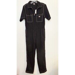 DICKIES Coverall Jumpsuit Women's Large Black Short Sleeve Pants Zip Up NEW