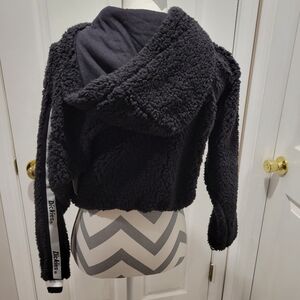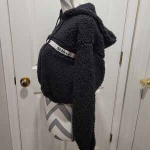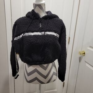DICKIES Junior's Fleece Faux Shearling Cropped Drawstring Hoodie Sweatshirt M