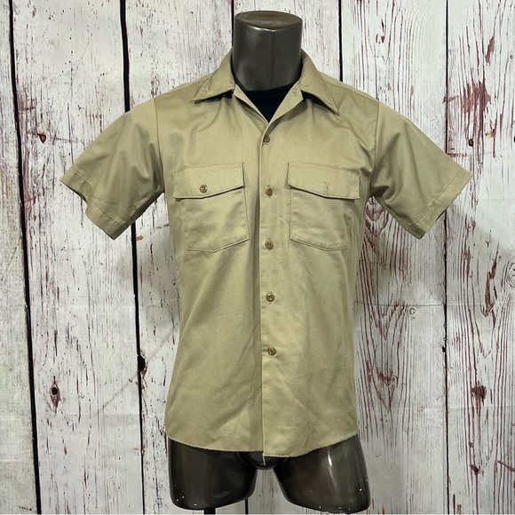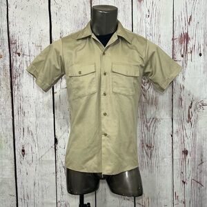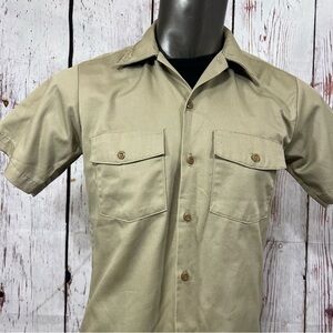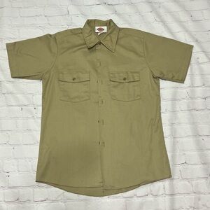 DICKIES MEN’s khaki work wear Button Down Shirt Short Sleeve Medium euc Vintage