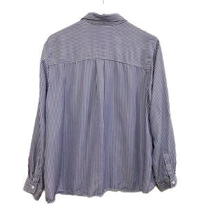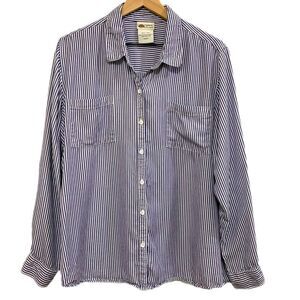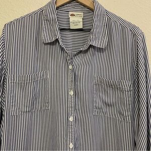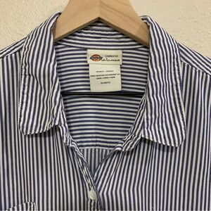 DICKIES Shirt Women’s XL White Blue Pinstripe Button up Pockets.