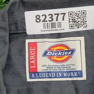 Dickies utility button shirt in L/XL. Features an extra-baggy fit, gray color, and durable workwear style. Perfect for casual or industrial wear.