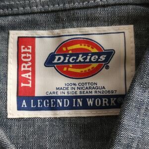 DICKIES classic fit denim western snap front long sleeve work shirt Size L NEW
