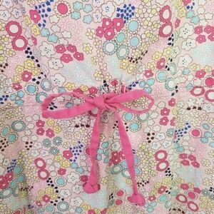Dickies scrubs, pink floral. Approximate measurements are pit to pit 21". Length is approximately 26". Sleeves are 8". No size tag. But probably a large. Bow tie in back.