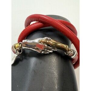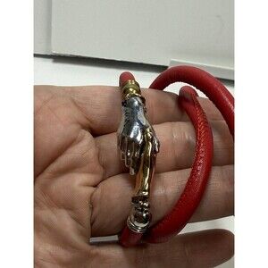 DIDAJ By Alyona Borochin Red Leather Wrap Around Bracelet W/Magnetic Hands Clasp