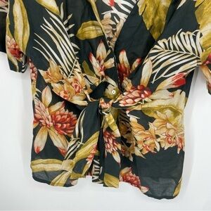 DIEGA Floral print Patterned Top tie button front short sleeve