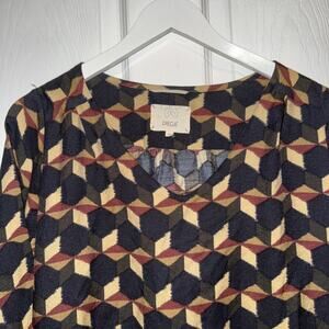 DIEGA Women’s Geometrical Print Morroco Dress Long Sleeve Size M Brown