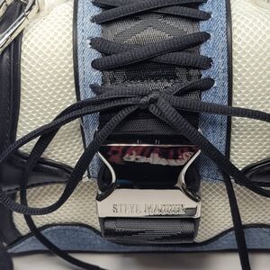 Stylish and versatile, this Steve Madden bag features a chic blue and white design. Perfect for any occasion, it combines fashion with functionality.