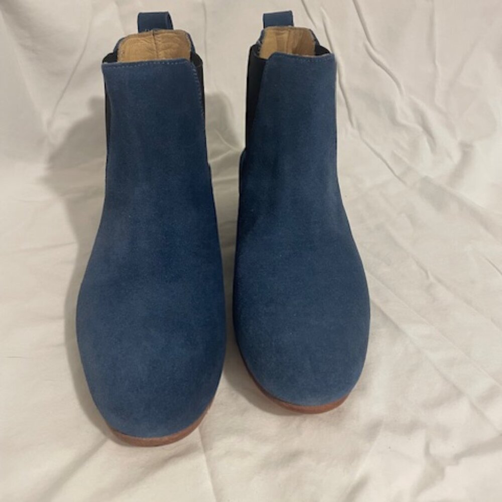 Bovine 7.5 Blue suede effect, no appliqués, solid color, elasticized gores, round toeline, flat, leather lining. Mexico $609.00