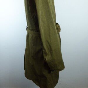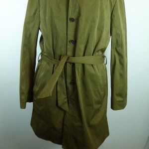 NEW WITH TAGS DIESEL BLACK GOLD TRENCH COAT/ LONG COAT..SIZE I54..About a medium to large(use measurements for fit)..made in Italy..retail $1150..nylon faux leather (sueded) with polyester quilted zip out lining..this is a olive brown tone..classic trench!