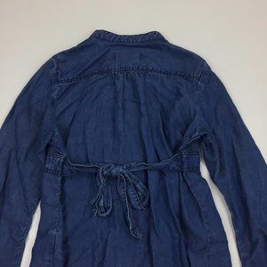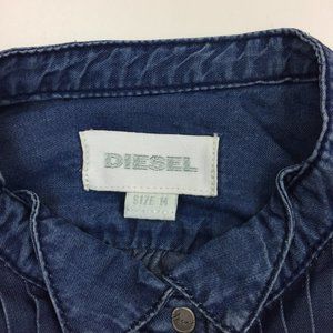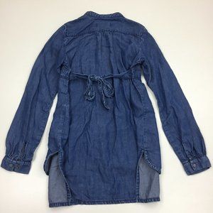 DIESEL Blue Medium Wash Chambray Logo Snap Button Belted Pleats Hi Low Hem Dress