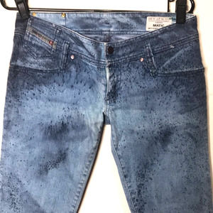 ONE OF A KIND DIESEL WOMENS JEANS BLUE WASHED TONE WITH A SPLASH PAINT DESIGN VERY RARE 100% AUTHENTIC MADE IN ITALY MEDIUM/LOW RISE STRETCH FOR A PERFECT FIT.