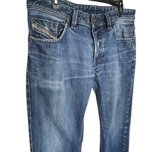DIESEL Men’s Larkee Regular Straight Fit Jeans Dark Distressed Wash 33