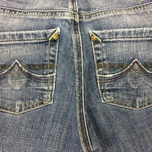 “Beautiful designer jeans. Made with Elastane for stretch. Medium/dark wash, bootcut, embroidered patterns on rear pockets. Multiple branding tags. Amazing condition. No holes or stains. From smoke free home. Made in ITALY!!”