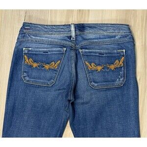 DIESEL Women’s vintage LOWKY B.C Low Rise jeans with embroidered back pockets, size 31x31. Made in Italy. Excellent condition. These jeans were originally 34, but have been professionally hemmed to 31. The model is described by DIESEL as bootcut, but they have a pretty straight silhouette, based on fit and the measurements. Please see pictures and measurements. The denim composition is 98% cotton and 2% elastane, so there is some stretch, though they hold their shape well and are slimming.