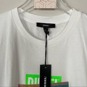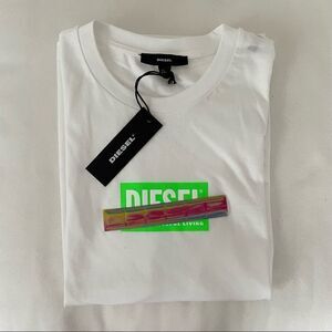 ⭕️ DIESEL White Short Tee T Shirt Logo Neon Short Sleeve M/L size