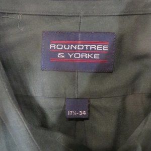 Nice Roundtree & York Dress Shirt - Dark Green in color - Long Sleeve/Button Down - Tag shows size 17 1/2 X 34 - Looked over entire shirt - no flaws seen or noticed - Listing Size as listed on Manufacturers Tag - 17 1/2 x 34 - I do not Measure - Not responsible far varying fit sizes from manufacturer to manufacturer.