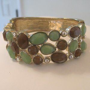 DILLARD'S GREEN AND BROWN AND PEARL BEADED HINGED BRACELET NEW