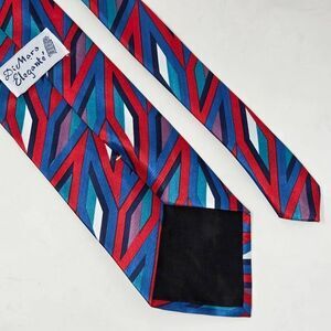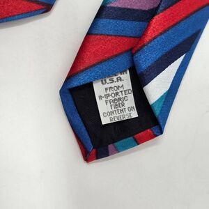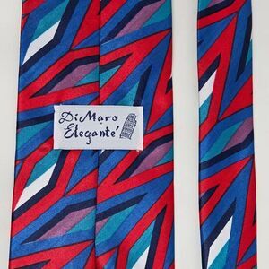 DIMARO ELEGANTE POLYESTER TIE BLUE RED WHITE GEOMETRIC 4" X 56" RETRO USA MADE