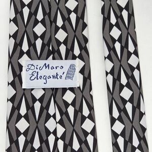 DIMARO ELEGANTE POLYESTER TIE GRAY BLACK WHITE GEOMETRIC 3.5" X 56" RETRO USA