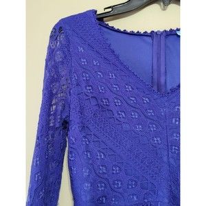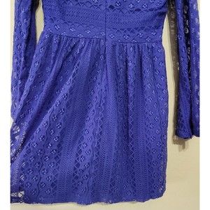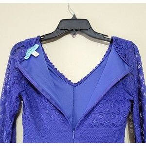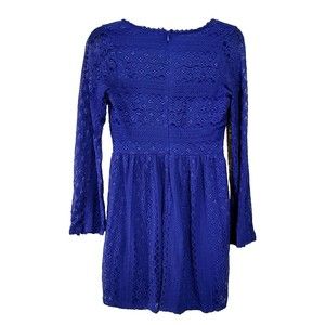DINA BE LACE DRESS LONG BELL SLEEVE V-NECK BLUE ZIP BACK LINED SMALL FIT & FLARE