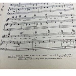 Please see the photos for the best details of the item. I am happy to answer any questions that I can regarding this sheet music. All sheet music is shipped in a flat cardboard mailer and is protected by a Plastic sleeve.