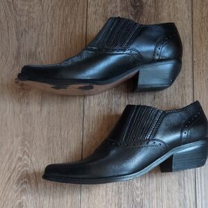 DINGO brand black leather ankle boots. Great with jeans or for cowboy western line dancing or motorcycle riding
