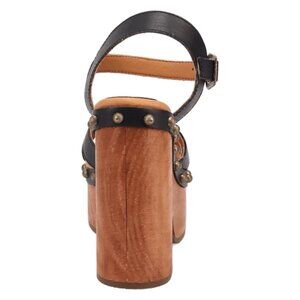 DINGO Lotus Black Leather Wooden Platform Sandals Sz 7.5M - Retail $303