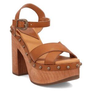 DINGO Lotus Tan Leather Wooden Platform Sandals Sz 7M - Retail $303