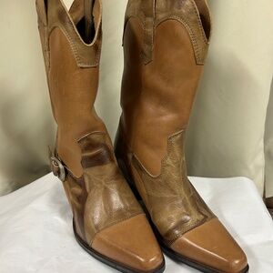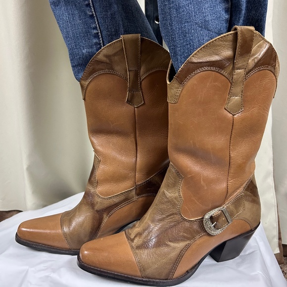 DINGO WESTERN STYLE BROWN LEATHER BOOTS WITH BUCKLE SZ 7