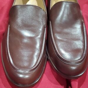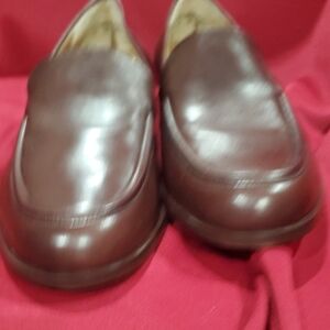These brown leather loafers feature a timeless moccasin-style toe and a polished finish. The slip-on design ensures ease of wear, while the flat heel provides comfort for extended use. Perfect for professional settings, they offer a classic and versatile style.
