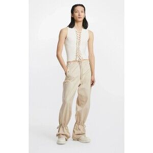 DION LEE Eyelet Tie Parachute Pant Cargo Straight Leg Chalk White Medium Y2K NEW.