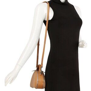 DIONA J WOMEN LEATHER PLAIN SMOOTH CURVED SHAPE HANDLE CROSSBODY BAG COLOR TAN