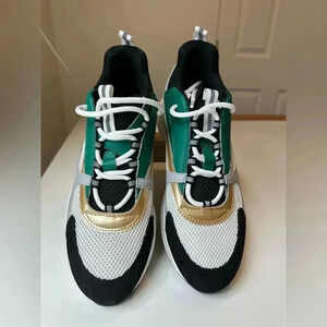 DIOR B22 Sneaker, White/Black Mesh with Green, White and Gold-Tone, Size 11.5us