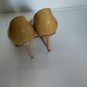 DIOR BEIGE PATENT LEATHER PEEP TOE PUMPS size 36