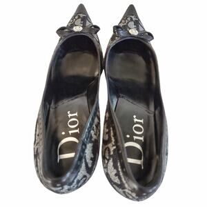 DIOR Black Diorissimo Monogram Pumps Sz 39 Kitten Style Heel Pointed Toe US 8.5