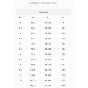 Per Poshmark's "Size Chart", this EU size 39 is equivalent to US size 8.5 - 9. I wear a standard size 9 and cannot get my foot into these. Best for someone with a size 8-8.5, Keep in mind, that pointed toe shoes eat into the size and dictates a smaller fitting size!