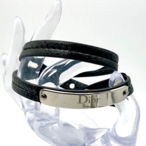 DIOR Bracelet Black Double Wrap Leather Choker NEW BOX