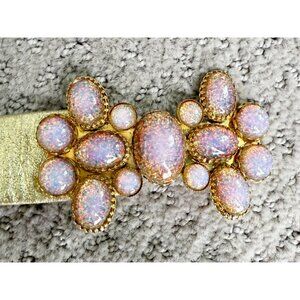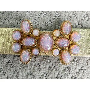 DIOR CHRISTIAN DIOR Vtg 80s Metallic Gold Leather Belt adjustable purple gem