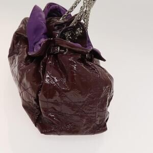 DIOR Canage Chain Tote Bag Patent Leather Purple Silver