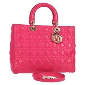 DIOR Canage Hand Bag Lamb Skin Pink Gold