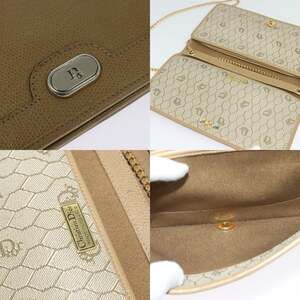 DIOR Chain Shoulder Bag Leather Beige Gold