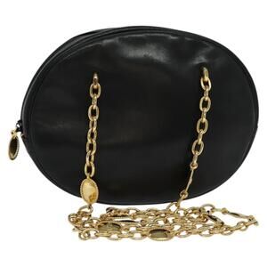 DIOR Chain Shoulder Bag Leather Black Gold