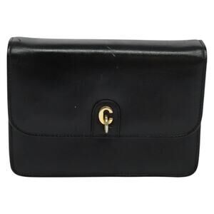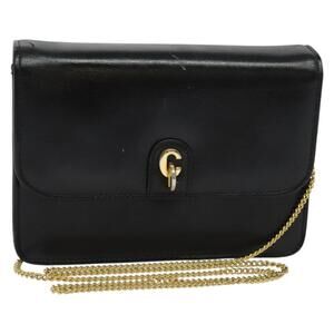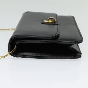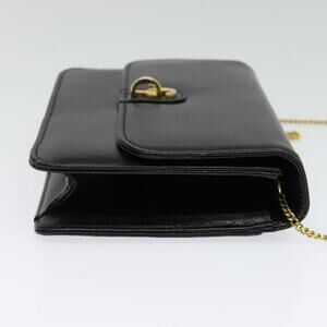 DIOR Chain Shoulder Bag Leather Black Gold