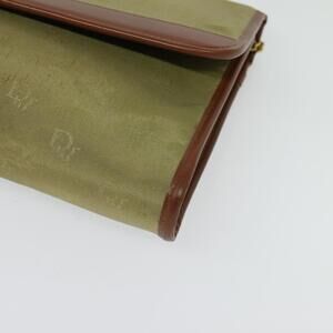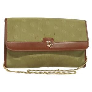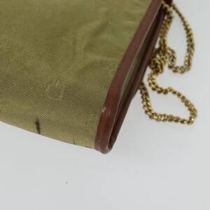 DIOR Chain Shoulder Bag Nylon Leather Beige Gold