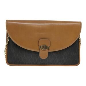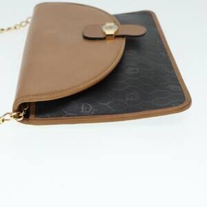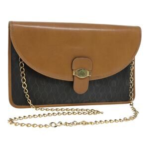 DIOR Chain Shoulder Bag Pvc Leather Black Brown Gold