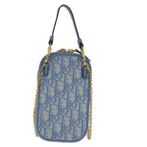 DIOR Chain Trotter Canvas Shoulder Bag Blue Gold