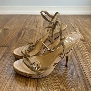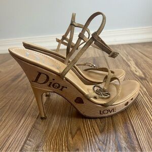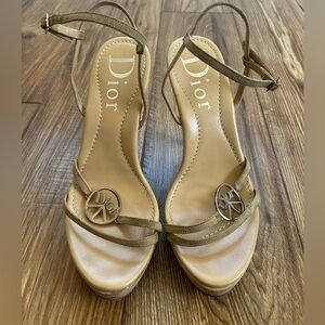 DIOR Christian Dior Love Peace Wooden Platform Heels Sandals Tan Size 39, 9-8.5