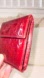 Elegant Dior wallet in glossy deep red. Features embossed design.